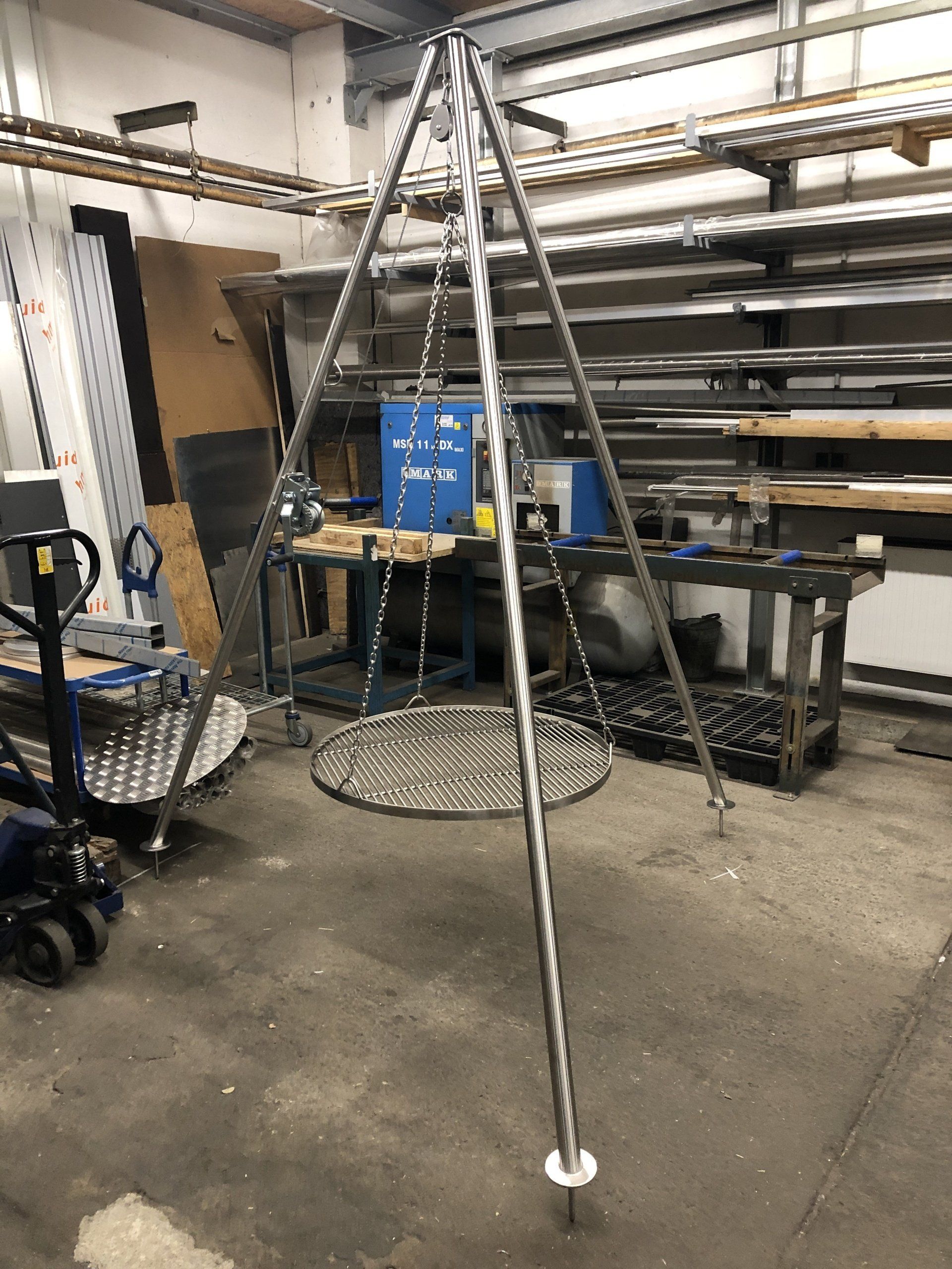 mit Seilzugkurbel, Edelstahlseil, Kette, Grillrost